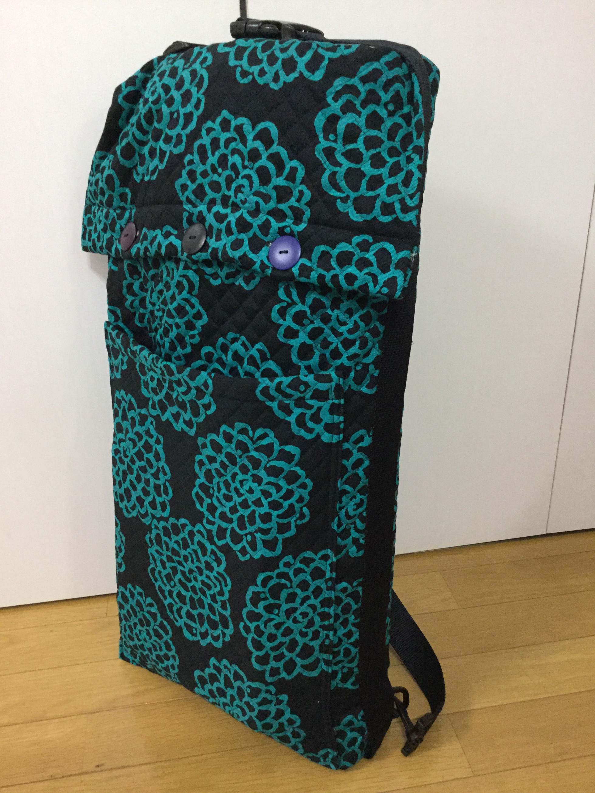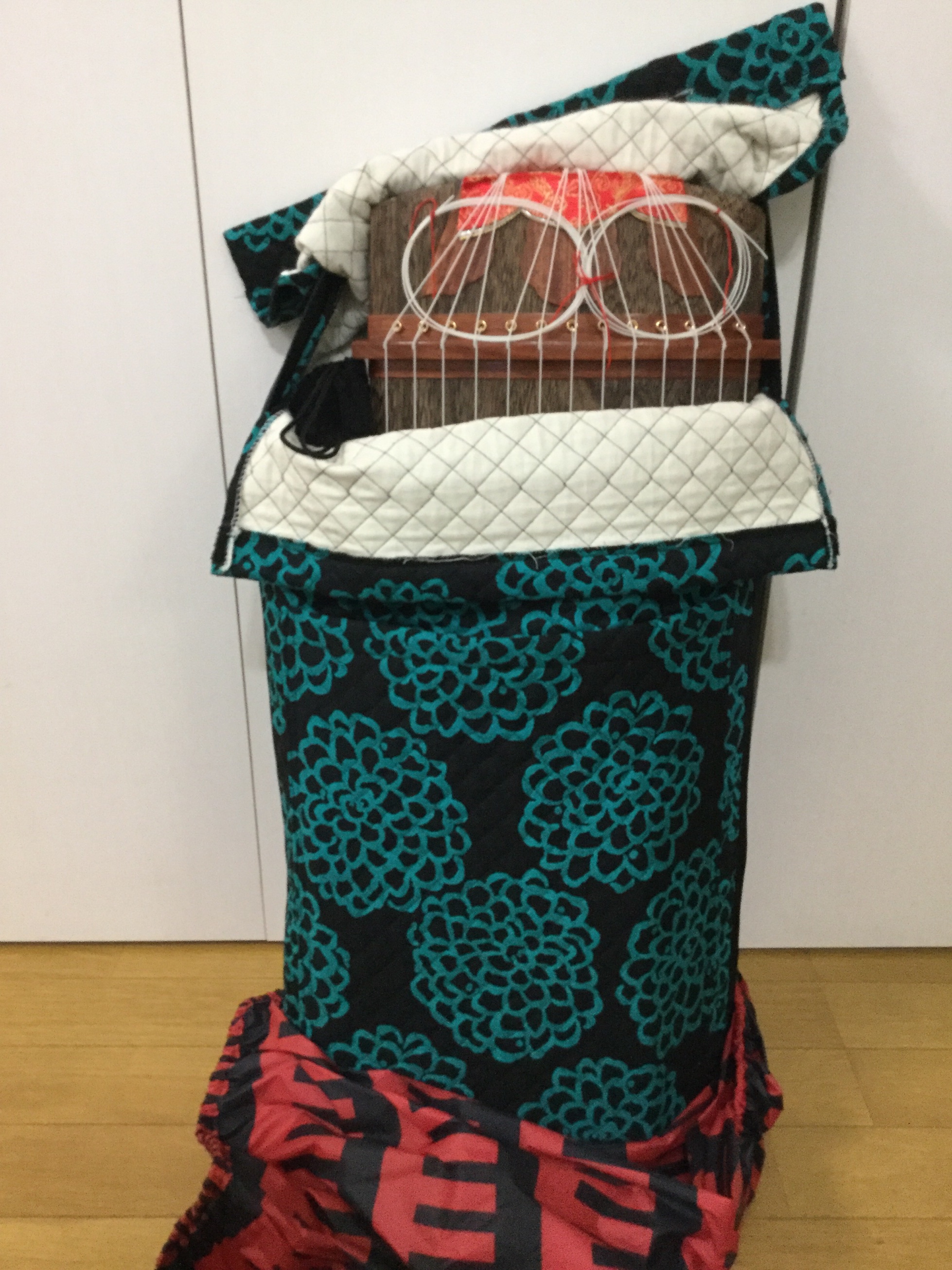 元々楽器(お箏)に付いていたカバーのファスナーが壊れてしまったから、新しく、譜面台も(紙芝居も)入るカバーを製作!