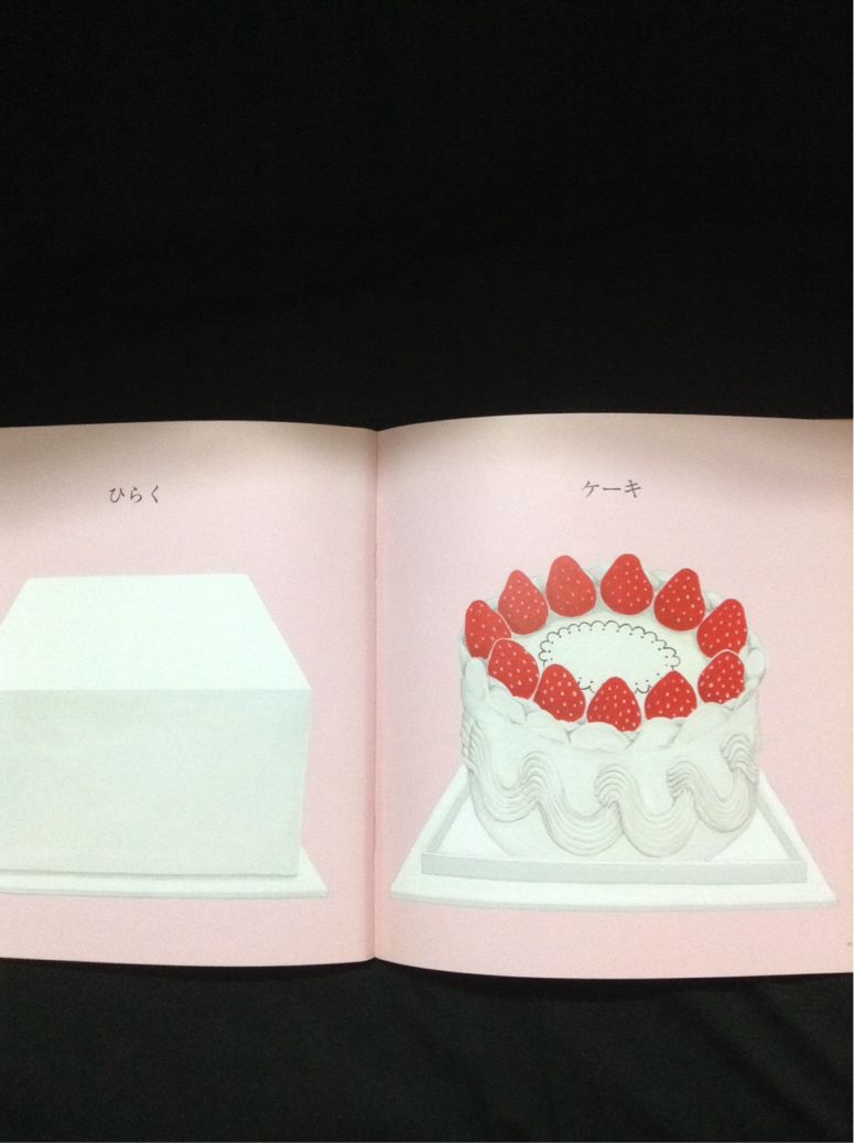 見開きのページに、閉じたもの→開いたものが、一緒に描かれているページは、半分隠してから、見せてみました。