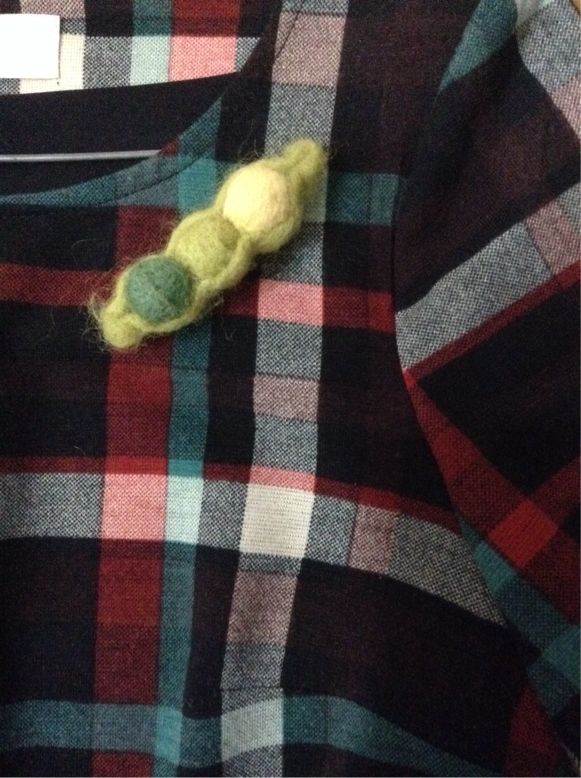 「おまめちゃん」「ひらく」と、2冊の絵本にお豆が登場したので、「えんどう豆」のブローチを付けて行ったら、K郎くんママが気付いてくれましたよ。