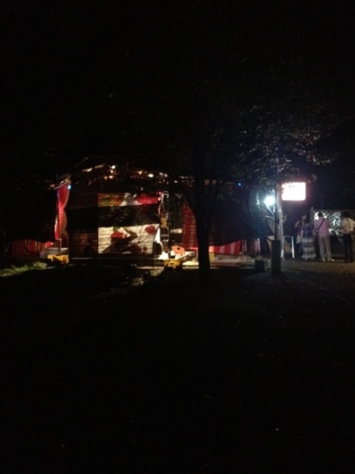 ※ほとんど灯りのない公園の中に、ポツンとそこだけ明るいテント小屋。その光景を見て思い出したのは昔ばなし…とっぷりと日が暮れてしまった山の中で、そこだけ明るい山小屋をみつけてホッとするものの、実は……やまんばの家だったり、キツネに化かされていたとか、オチのある昔話。ちょっとだけ、タイムスリップ味わえた(^。^)