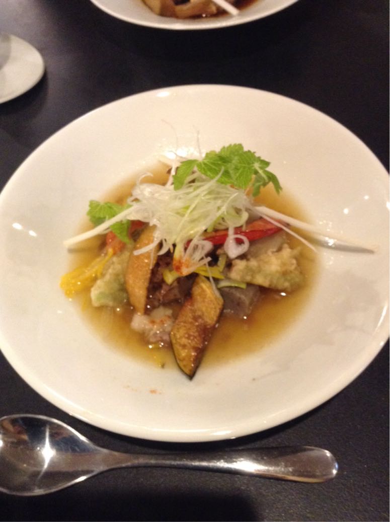 南京餅&かぶのムース/ワイン豚と根野菜/ほうじ茶のプリン