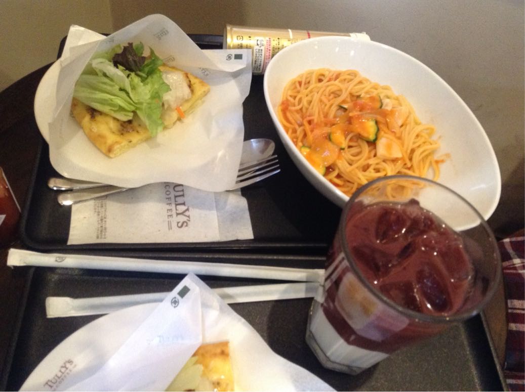 パスタメニューが、残り1食ということだったので、ピザと、半分こしました。