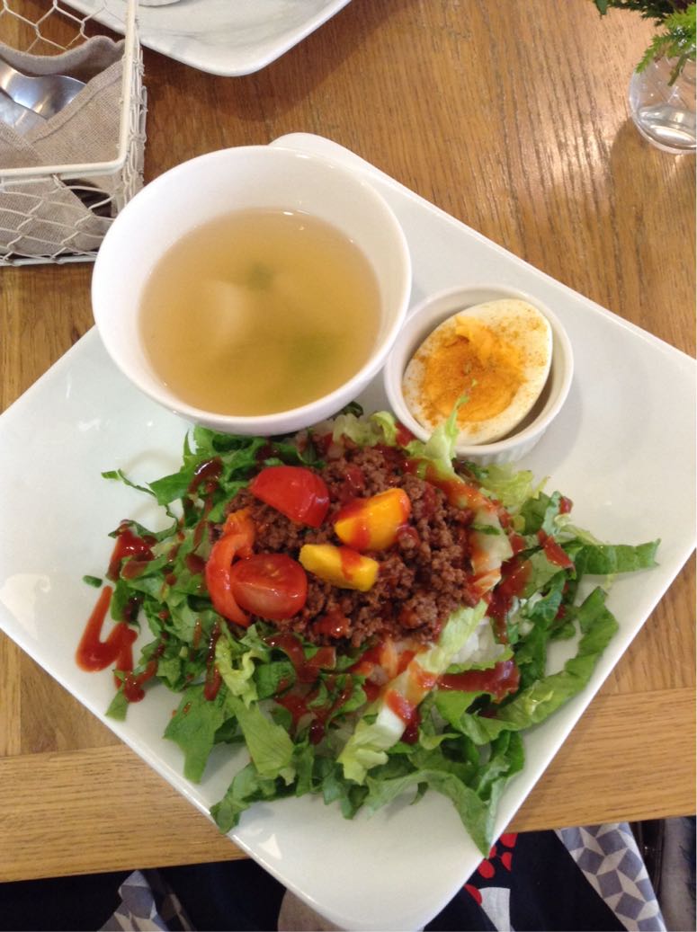 「カフェ ルッカ」…タコライスプレートセット(プチデザートはカラメルバナナシフォン)