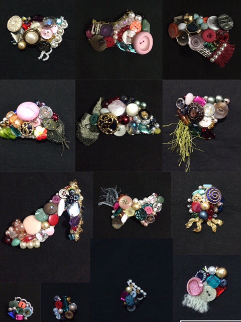 ボタンやビーズの位置を考えるのが楽しくて、ぼちぼち作りためたブローチ。(増殖中)