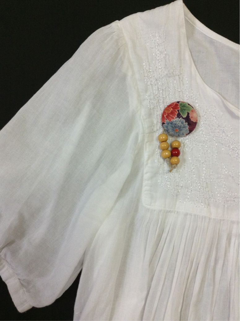 白いチュニックを着る事にしたら、何だかワンポイントが欲しくなって…