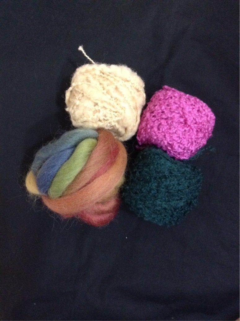 発泡スチロールにまず毛糸で飾り付けをするんだけど、想像力のない私は、偶然の楽しさを期待。