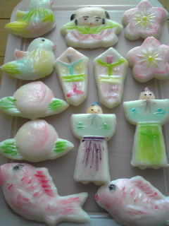 名古屋では、おひな様に「おしもの」をお供えして、お下がりを食べる風習があります。