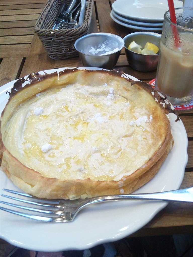 気になっていたた「ダッチベイビー」は直径たっぷり20センチあるビッグサイズで、注文取りに来たお姉さんに「一人で食べる人いますか?」なんて往生際悪いこと言っちゃったけど、どのメニューも結構サイズ大きかったからね、気になってたモノを頼みましたよ。
