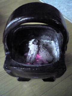 申し訳なく思いながらも、今日は「(手)さげ火鉢」を準備しました。(普段使わない石油ストーブが残っていても、灯油までは…)