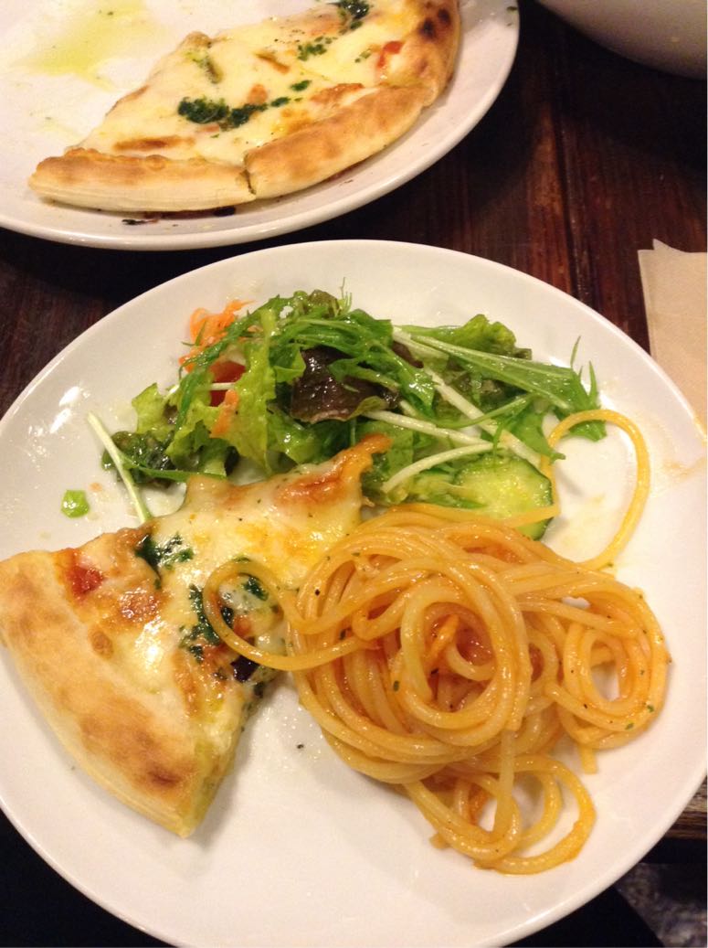 ↓ピザ、パスタ、サラダを妹と分けっこ
