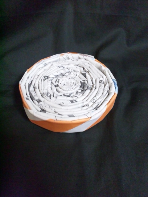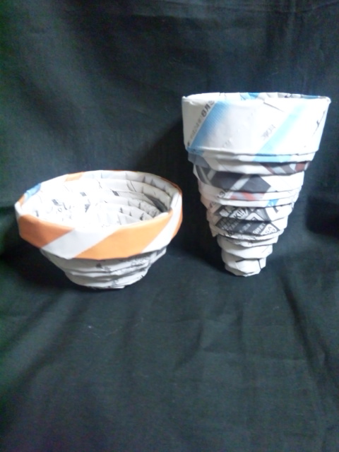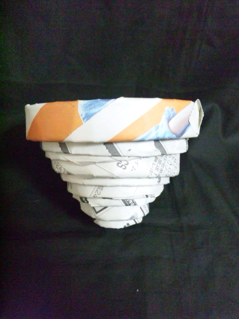 新聞紙をくるくる巻いて作ったモノを