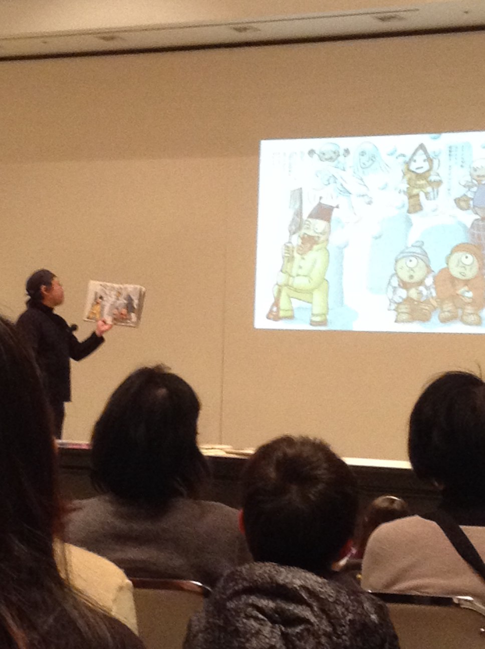 講演は、絵本「槍ヶ岳山頂」の製作裏話。
