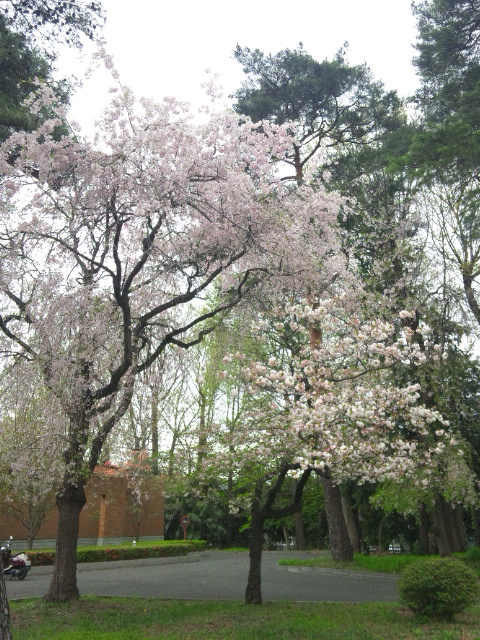 ↓染井吉野が散った後は枝垂れ桜と八重桜