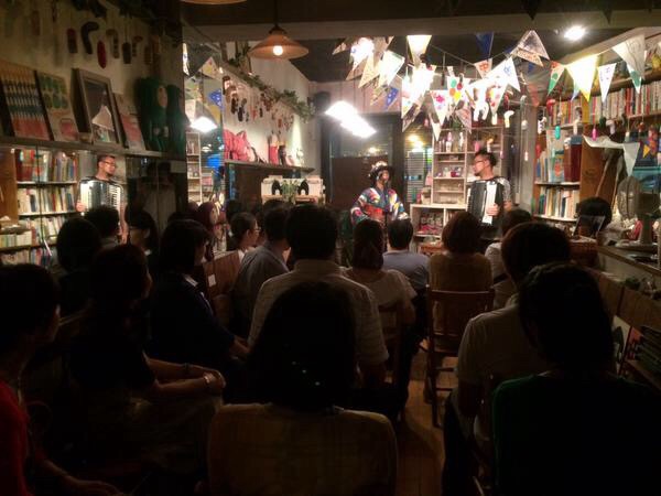 以前から行きたかった会場の「絵本カフェ holo holo」は、作家さんのオシャレな雑貨や、たくさんの絵本が可愛らしく飾ってある素敵なお店。