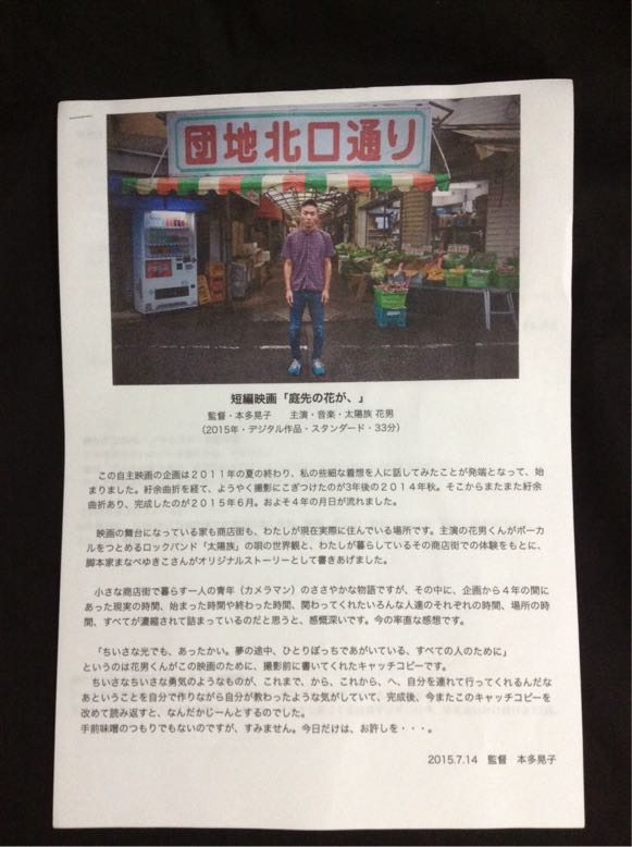 監督の住む商店街が舞台になっているけれど、共感できる人はたくさんいそうな仕上がりになっています。いろんな人に観て貰える機会があるといいんだけどな〜