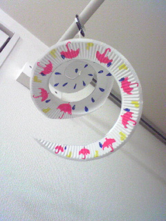 「おもちゃこうぼう」の部屋では、大人5人で、「うずまきモビール」を作りましたヨ!
