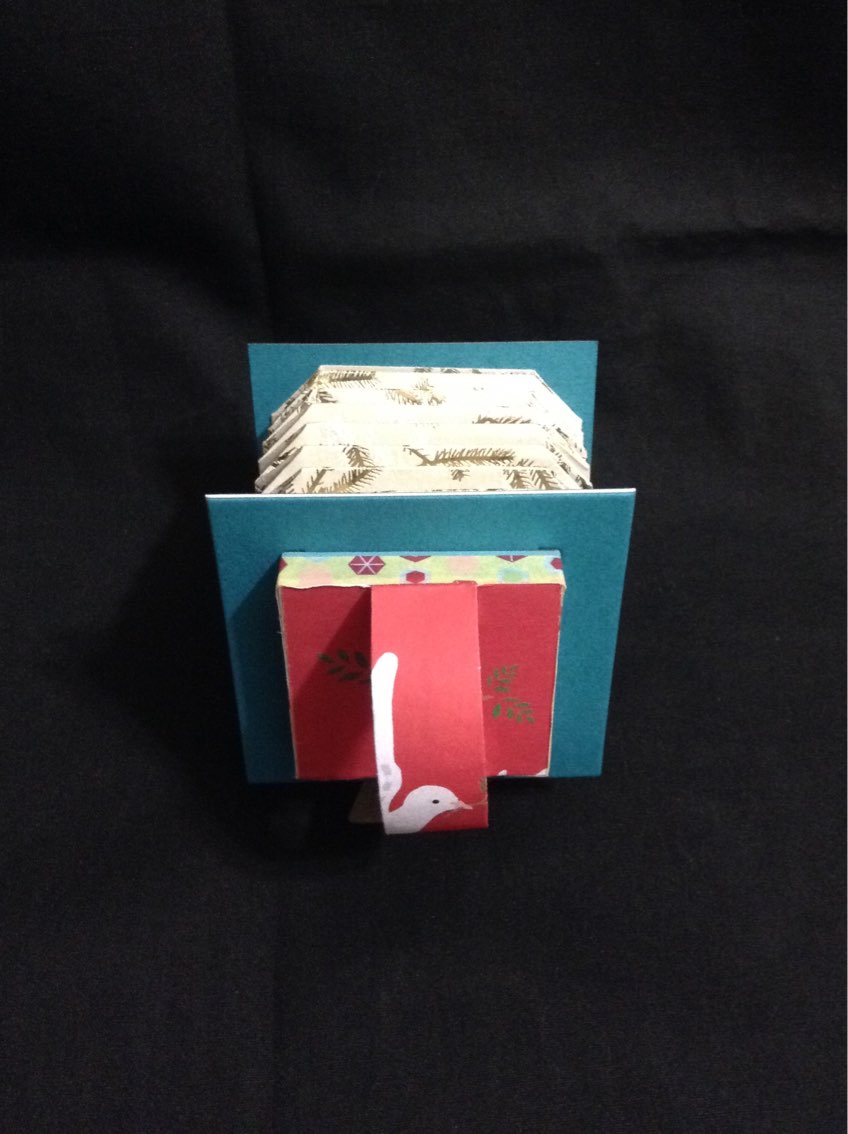 悩むんだろうな、と覚悟していたら、蛇腹には折りにくいと、真っ先に却下した紙を見つけて、ソレに決定。