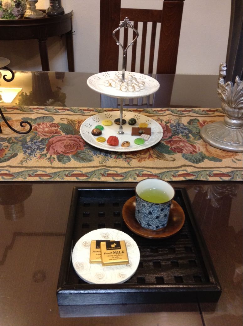 お茶まで出して頂き(奥のケーキトレイに乗っているのはボタン)