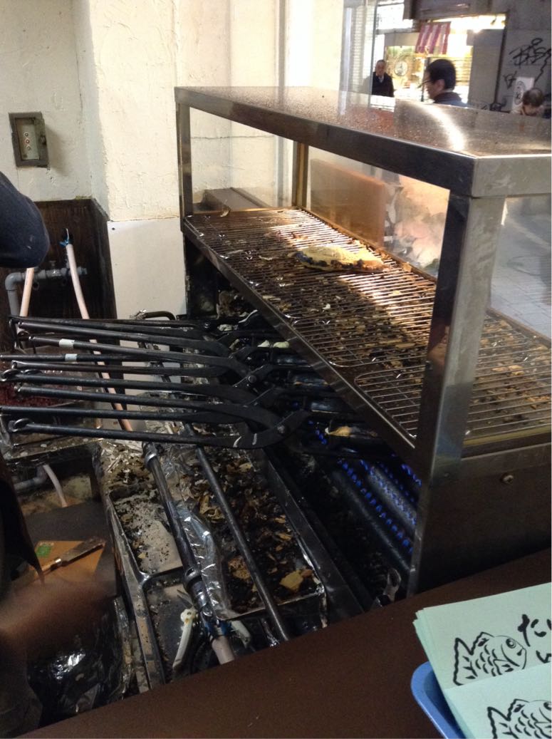 「15分待ち」と言われたけれど、一丁焼きという1匹ずつ焼くのも珍しくて、見学しながら京都の番茶も頂きました。