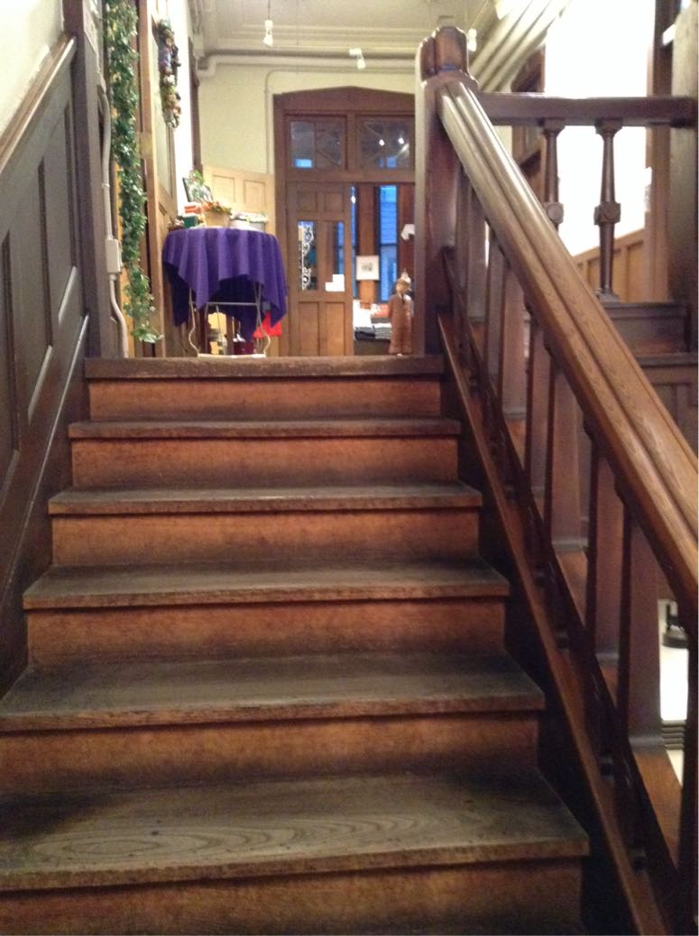 見落としそうな小さな入り口「ドア」は、1mぐらいしかなくて屈んで入ります。もう、ソレだけでテンションが上がってきて…中に入ると、壁いっぱいにカエルさん!