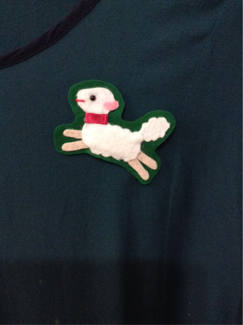 ↓ひつじブローチ(ぱたぽん)を付けて