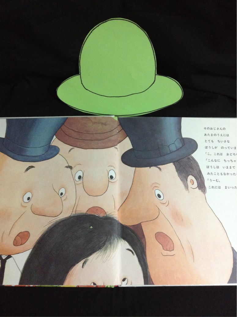 *帽子が好きな町の人たちのお話なので、私も帽子をかぶって来たよ、と話したら、みんなうなづいてました(^_^)