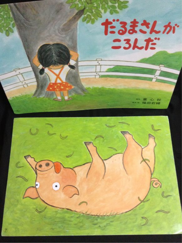 *「ねこさんが」「ぶたさんが」…「ころんだ」一緒に叫んで?、ねこやぶた、うし…が転ぶ画面で大喜びしてました。楽しかった〜