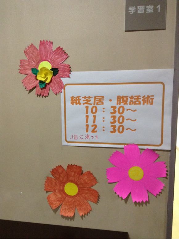 7回めになる福祉まつりで、今年も図書館のおはなし会メンバーM田さんとS藤さんと3人で、それぞれ3作ずつ演じました。今回は、腹話術の方もご一緒しました。