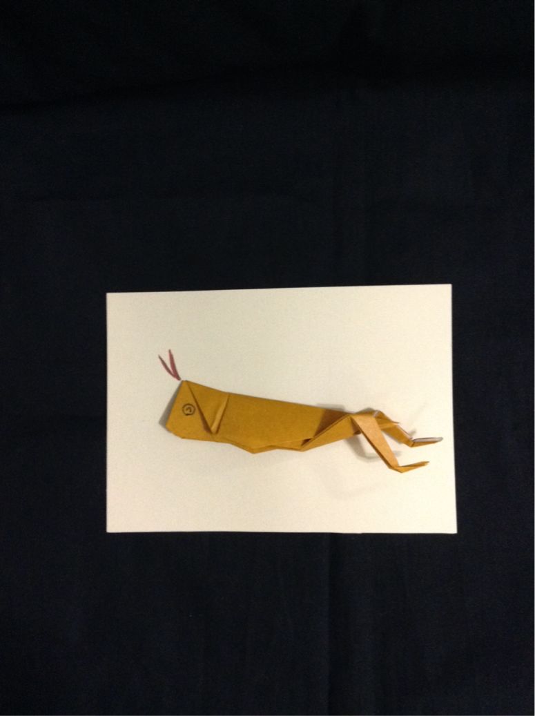 今月の折り紙「バッタ」…ホントはコオロギとかが良かったんだけどね。