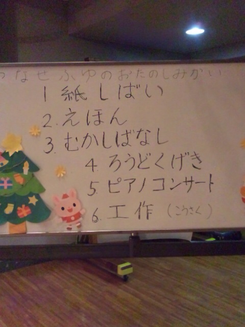 クリスマスバージョンで、普段とは違って、簡単工作したりパネルシアターしたり、クリスマス折り紙のお土産があったり…