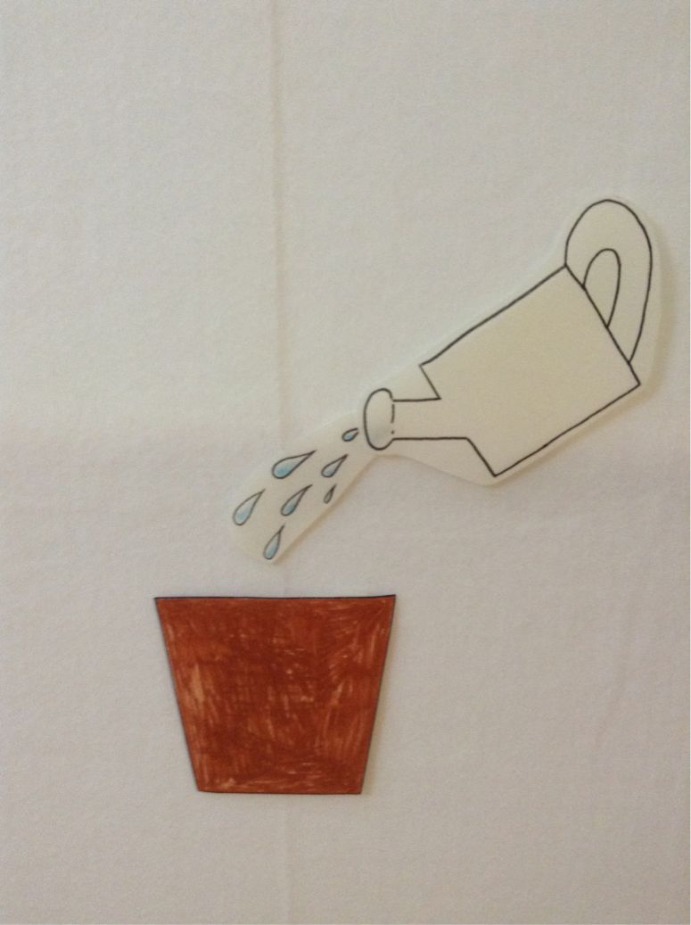 お水をあげると……(ジョウロをずらすと、隠しておいた水が現れます)