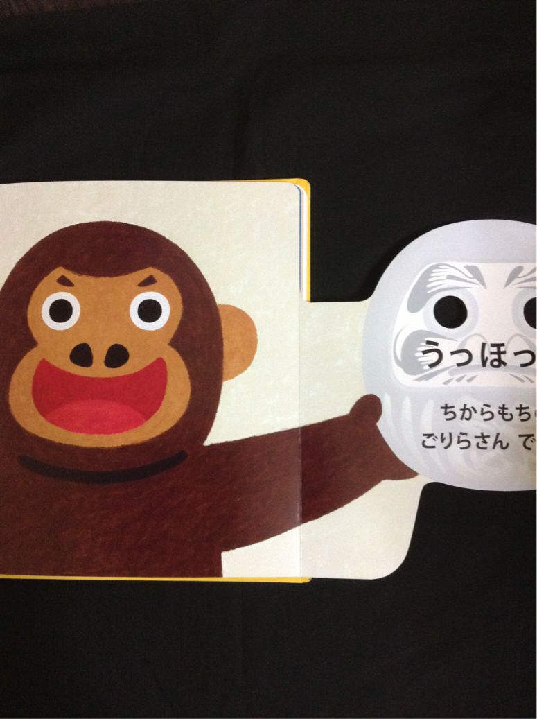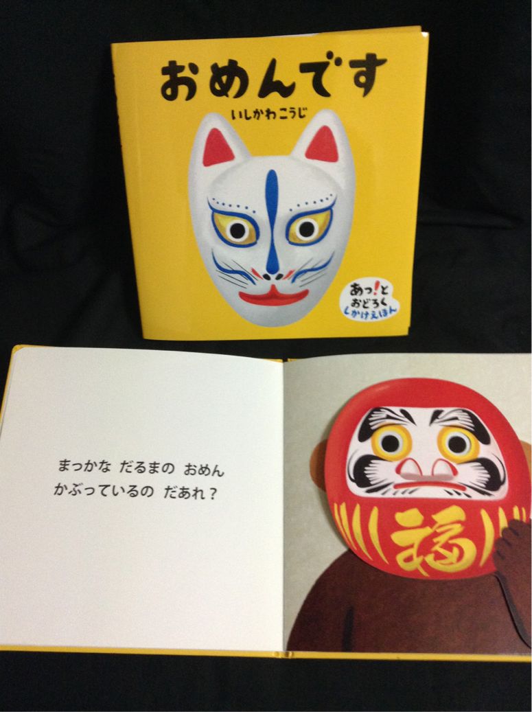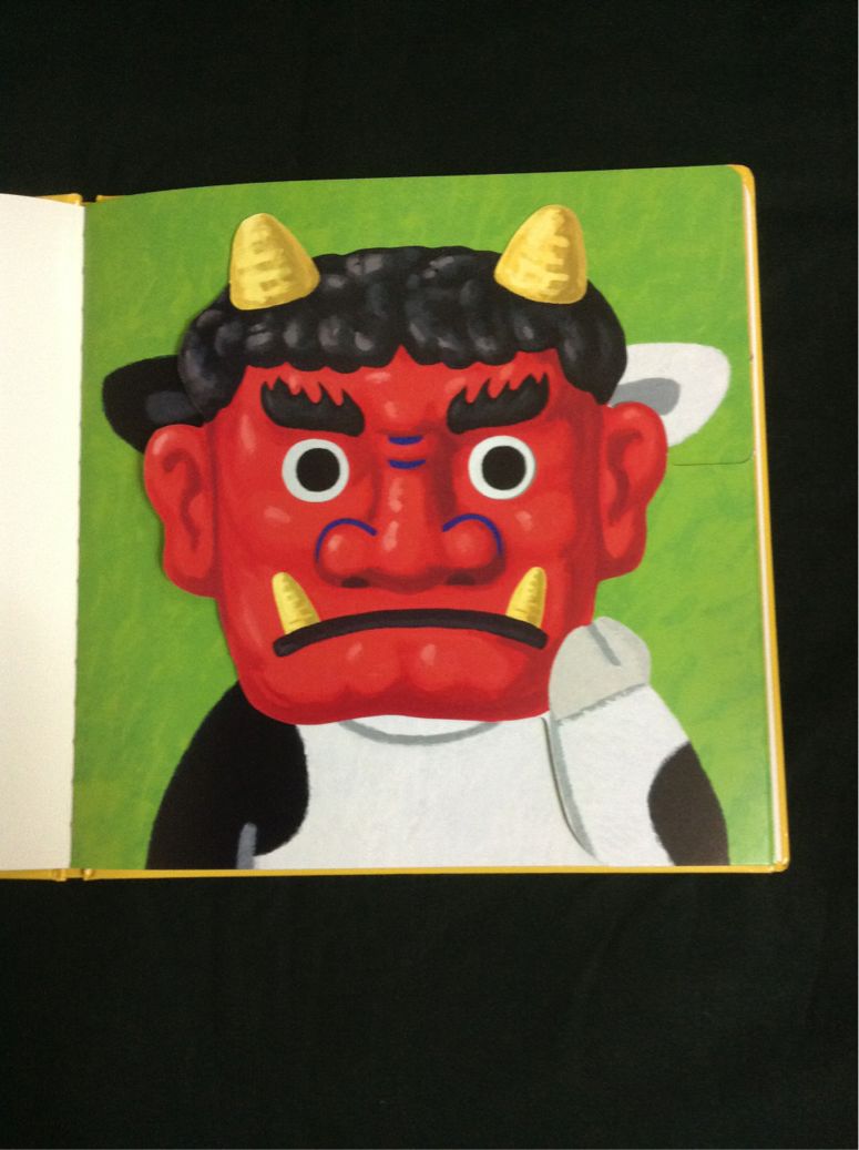 *シンプルなしかけ絵本で「いないいないばあ」遊びができる絵本だけど、最初のページに真っ赤な鬼のお面がいきなり出てくるのは、怖がらないかな、ってふと不安に。でも今日のちびっ子たちは喜んでました!