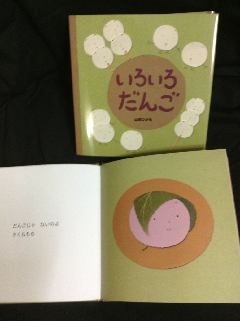 *始めに「おだんご好き?」って聞いてみたら、男の子一人「キライ」って!でも、最後のページで「いろいろだんご だれがすき」って読んだら、「どれもすきだなぁ」だって(^_^)