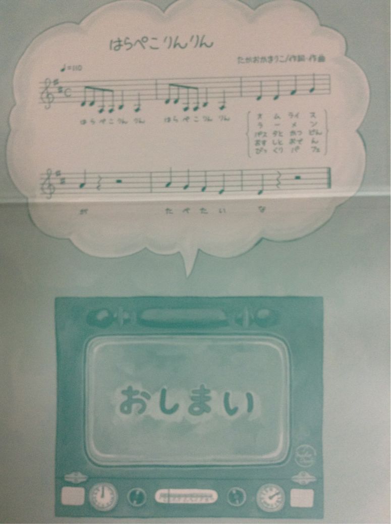 *絵本の見返し部分に楽譜も載っているけれど、自分の歌いやすいメロディーに変えて歌ってみたら…想像以上にちびっ子たちはノリノリ♪"・.♪.*゙♪"・.
