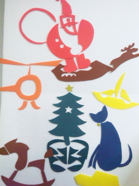 クリスマスが近いので、折り紙(ツリー)のプレゼンやパネルをちらり♪"・.♪.*゛♪"・.