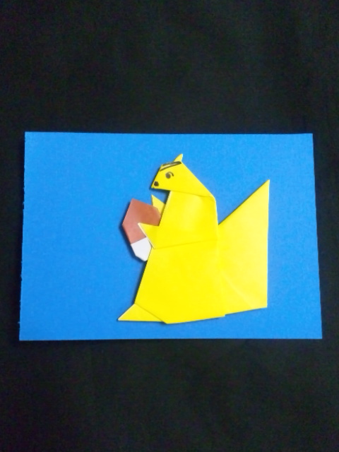 今月の折り紙は「犬小屋の犬………(『コロ』『チロ』『ムサシ』etc.全部名前、違います)