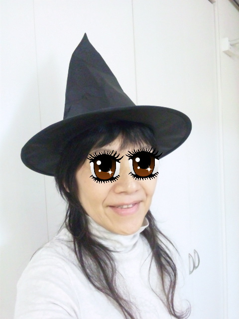 ハロウィンに因んで、図書館スタッフOさんと私は魔女帽子をかぶって、はじまりはじまりぃ~