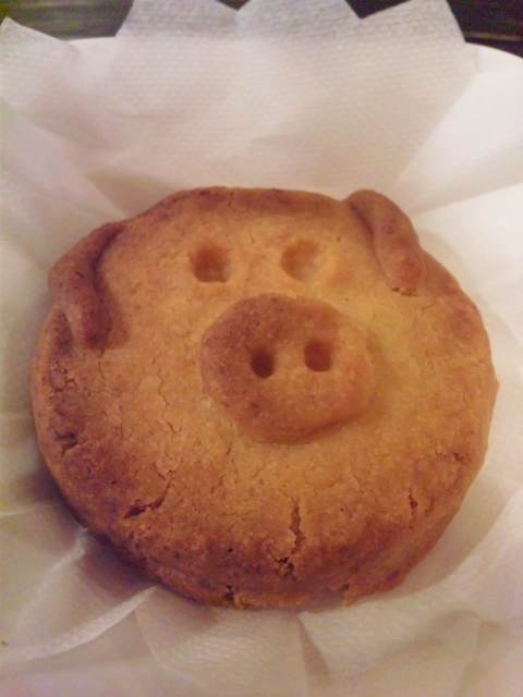 ホッとして、帰宅途中ローリング・ビーンズに寄って、アイスティー&ぶたサブレでひと息。