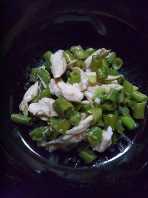 夕飯には、おはなし会メンバーS藤さんの旦那さま菜園発いんげん豆を使った棒々鶏を作りました。