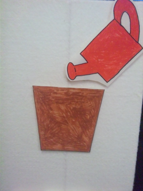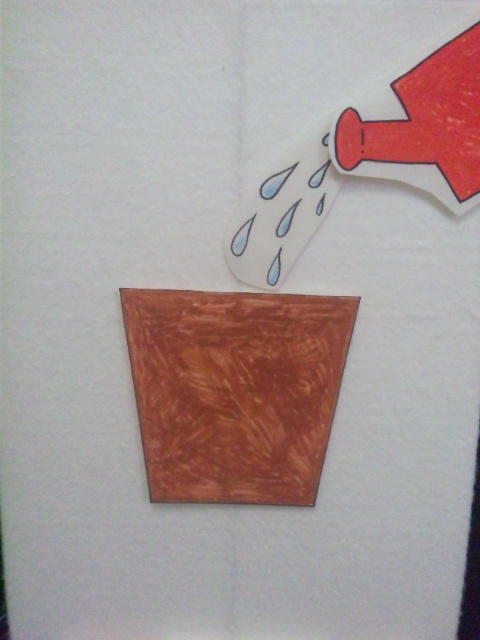 植木ばちに赤いタネをまいて
