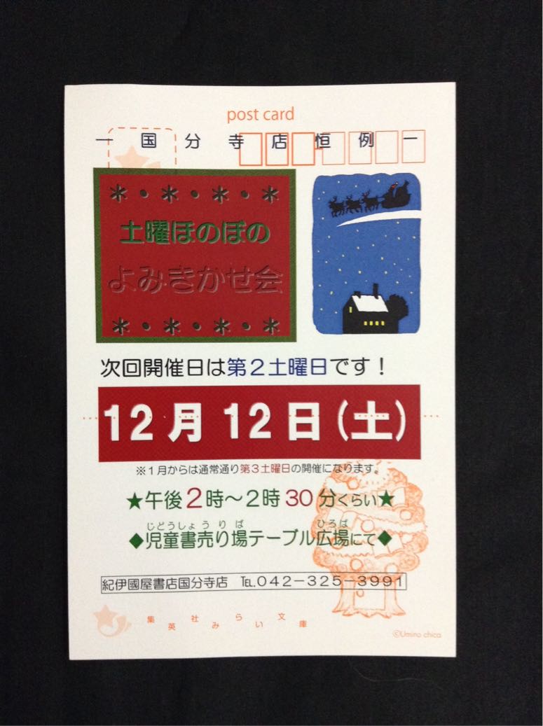 毎月第3土曜日の会だけど、クリスマスシーズンの12月だけは、第2土曜日に開催。