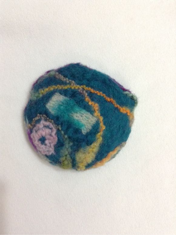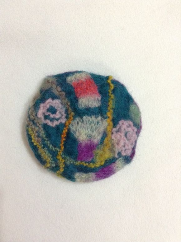 フエルト2色も乗せて、擦る作業は30分以上、ビックリ(@_@) バッグとか大きな作品を作るの、大変なのねぇ。