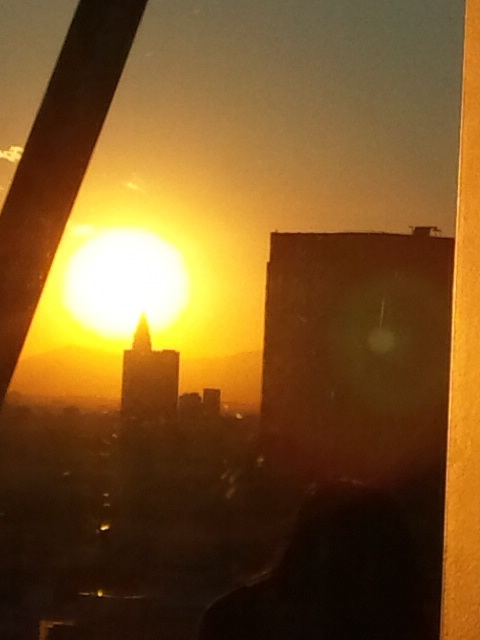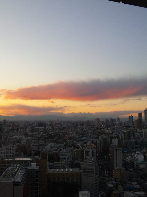 夕日が都庁のろうそくの炎に見える:シビックセンター25階より
