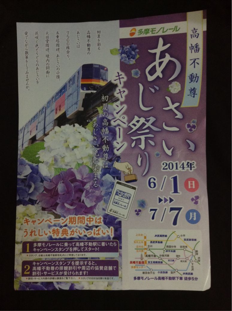 あじさいは、お不動さんの山にたくさんあるから、軽~く山登り。夫は息切れ?