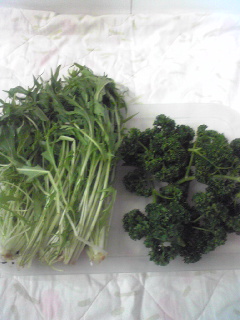 ↓S藤さんの旦那さま菜園発ミズナ&パセリ