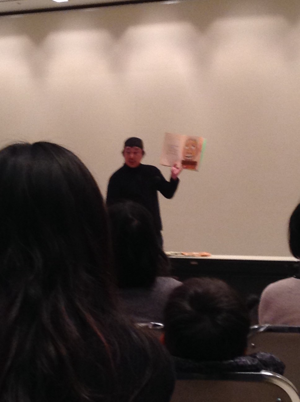 講演は、絵本「槍ヶ岳山頂」の製作裏話。