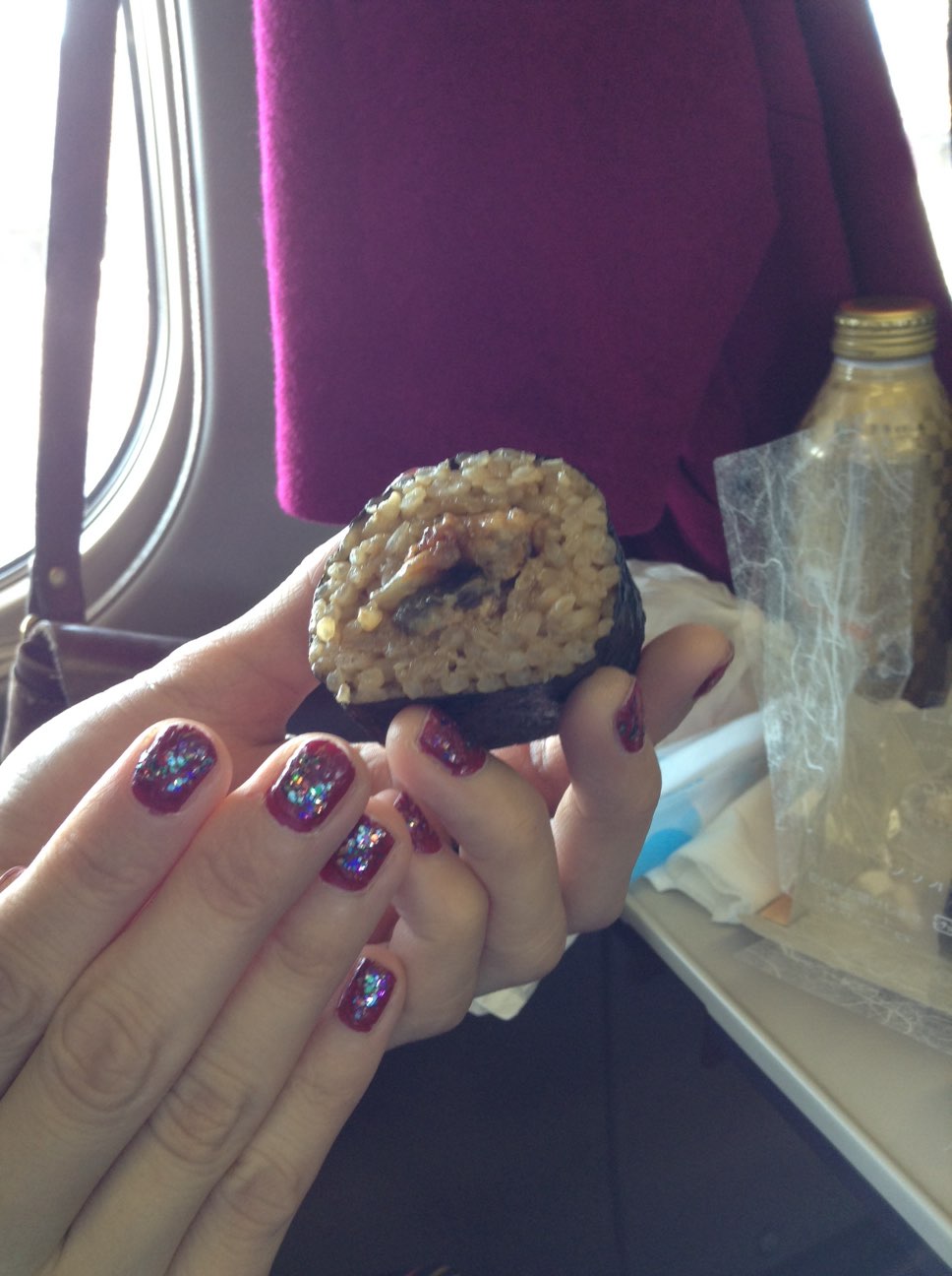 お得な「ぷらっとこだま」で、娘と一緒に京都へ移動。乗り慣れている娘は、さくさくドリンクを引き換え、気になっていたという「ひつまぶし巻き」を買って乗車。娘と二人で新幹線に乗るのは……3年前ぶり(^_^)