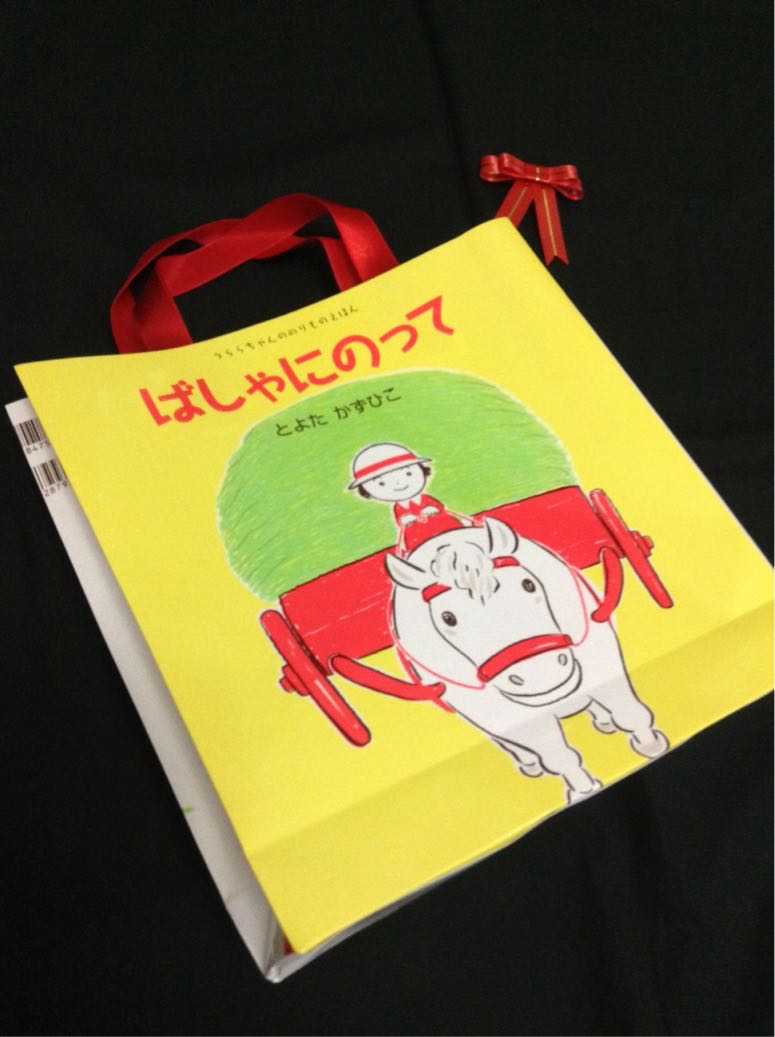 絵本カバーは、とよたかずひこ氏ののりものシリーズ…迷って「ばしゃにのって」をチョイス。
