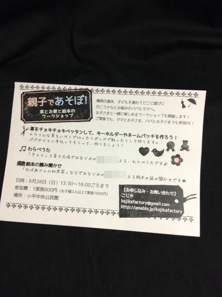 絵本とおはなしのみせ「おばあさんの知恵袋」で出会った革工房こじかさん企画のワークショップに参加。
