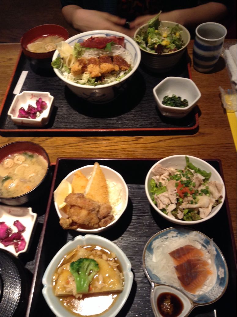小鉢御膳(手前)と海鮮福吉丼&サラダ